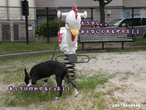 ↑↑遊具で遊ぶどころか。。。遊具にもてあそばれるシロクロに