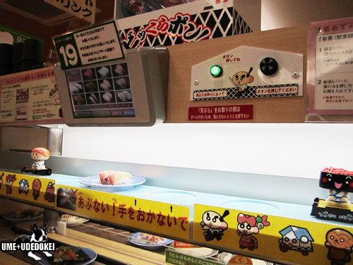 パネルで注文したお寿司は上のレーンでダイレクトにやってきます。。