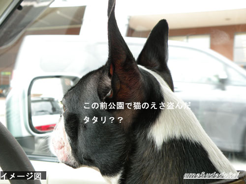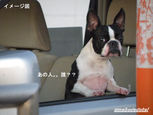 ウメがいる助手席を避け後部座席へIN