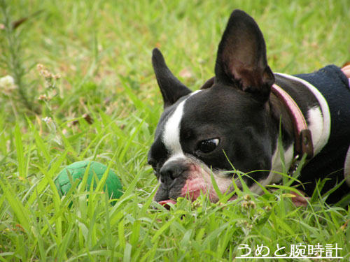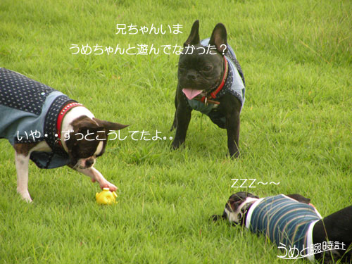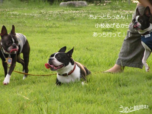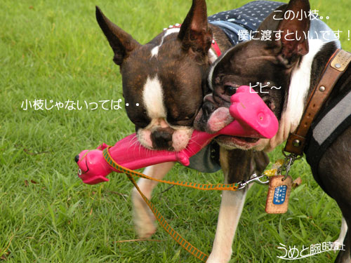 早速、むぎちゃん持参のハイパー小枝??!!にがっつくうめ!!