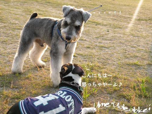 グッドタイミングで。。友達シロクロが海に出没というメール♪