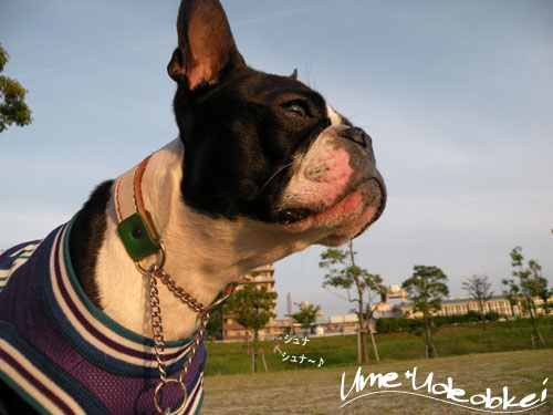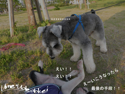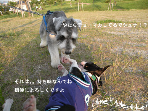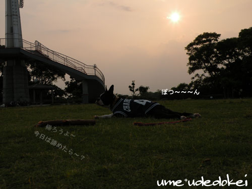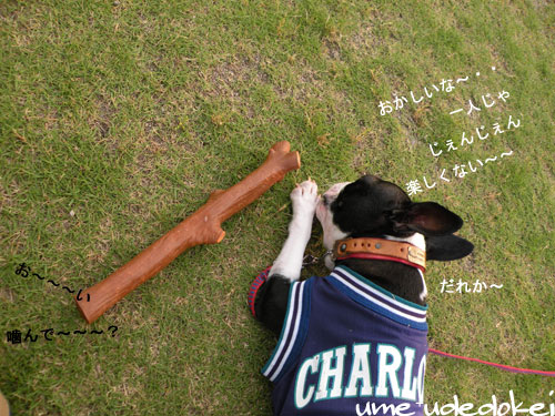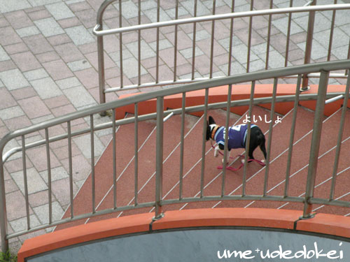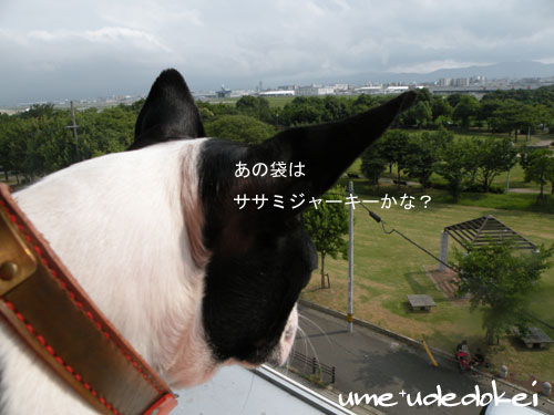 下の公園でよそのワンコがおやつをもらってる姿がきになるうめ。。