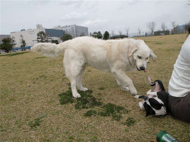 あまり動じずに他の犬とも上手に絡める大物カブ君!!