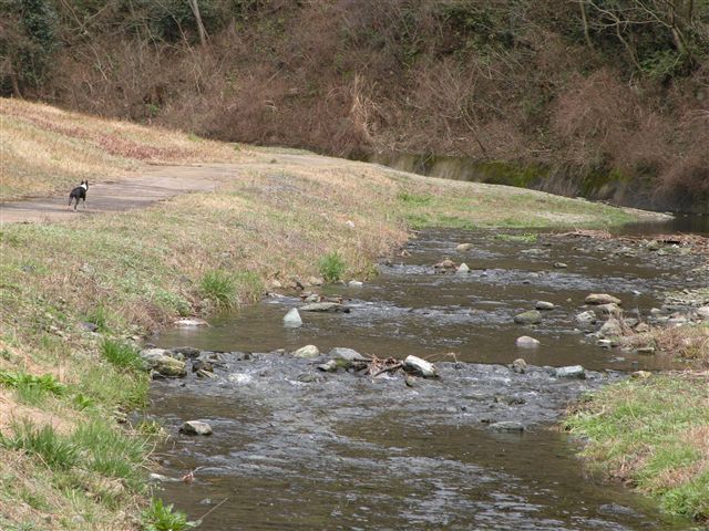 浅い小川に沿ってきれいに整備された公園です。