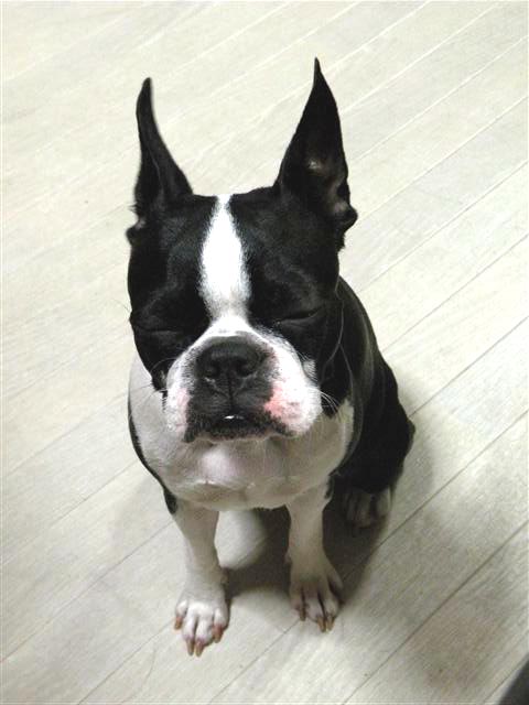 最近やらされてる感100%のおすわり姿・・・
