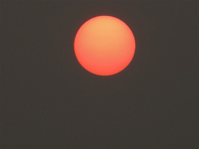 遠くで稲光が・・今日は怪しい夕焼けでした